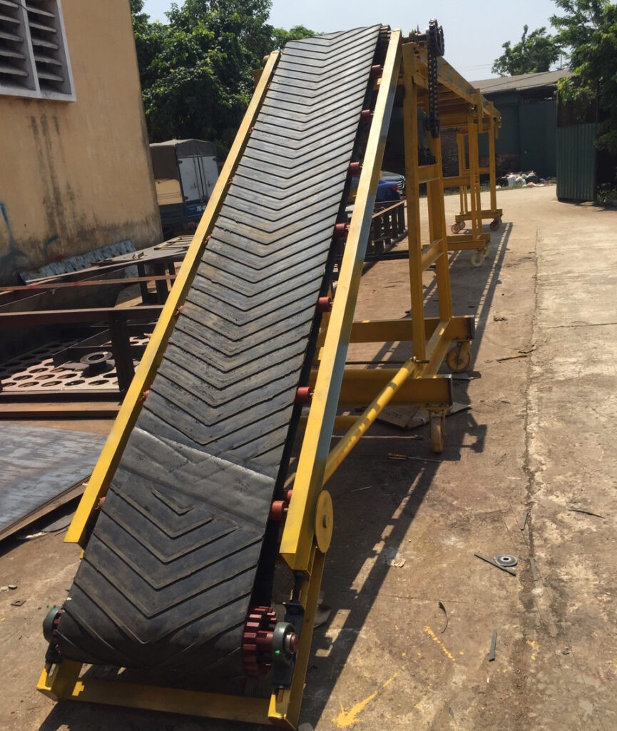 - Xi lanh thủy lực hoặc khí nén: Tạo ra lực đẩy để nâng hạ cánh băng tải lên xuống.