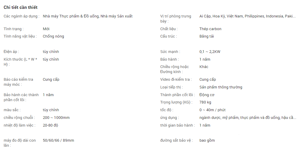 - Chiều rộng của hệ thống băng tải con lăn: Có thể được thiết kế theo yêu cầu của bạn