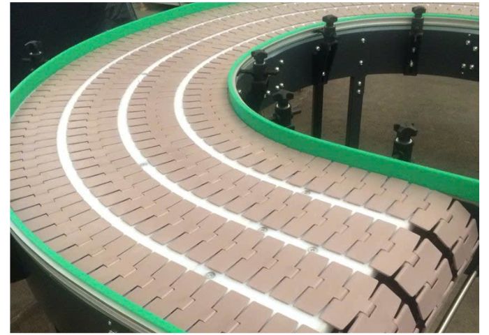 Băng tải xích nhựa cong là một biến thể của băng tải xích truyền thống, được thiết kế với đường cong để phù hợp với các yêu cầu vận chuyển phức tạp trong nhiều ngành công nghiệp. So với băng tải xích thẳng, băng tải xích nhựa cong mang lại nhiều ưu điểm vượt trội về tính linh hoạt và hiệu quả.