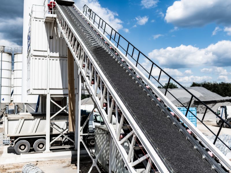 - Trong ngành sản xuất xi măng, băng tải gân được sử dụng để vận chuyển các loại nguyên liệu như đá, cát, và clinker từ kho chứa đến máy nghiền. Những vật liệu này thường có trọng lượng lớn và khó vận chuyển, đặc biệt là trên bề mặt dốc.