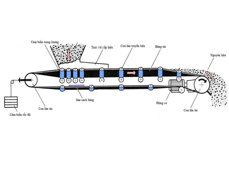 Băng tải gân có cấu tạo khá đơn giản, nhưng mỗi bộ phận đều có vai trò quan tọng trong quá trình vận hành: