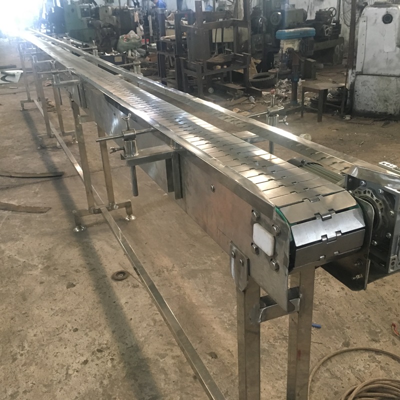 Vai trò của băng tải xích tấm là vận chuyển nguyên vật liệu, hàng hóa từ vị trí A đến B trong một quy trình sản xuất cố định.