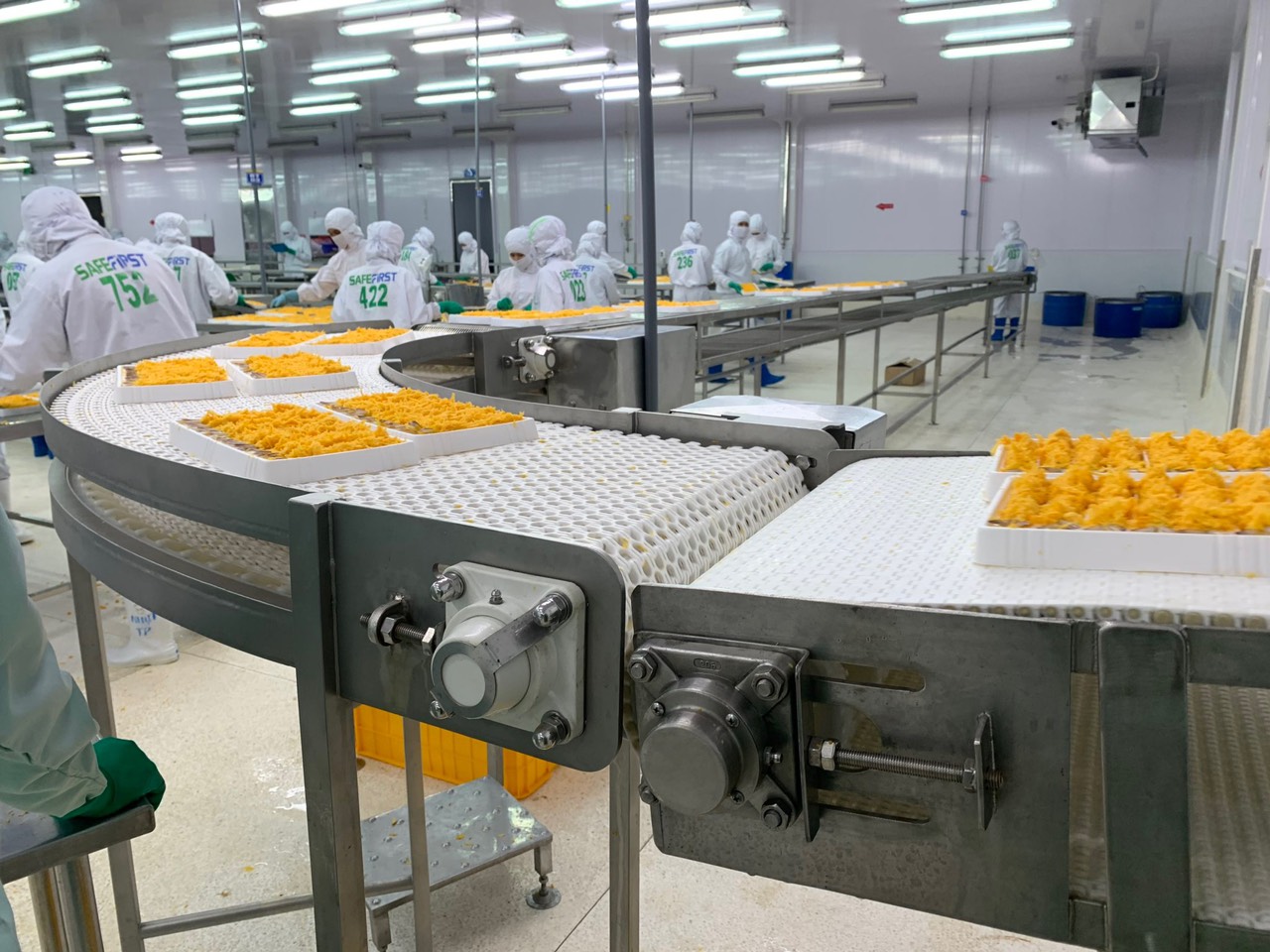 - Ngành công nghiệp chế biến thực phẩm: Băng tải xích tấm được sử dụng để vận chuyển các nguyên liệu thực phẩm, thành phẩm trong các ngành công nghiệp chế biến thực phẩm như sản phẩm xuất khẩu bia, nước ngọt, sữa, thịt, thủy sản,…