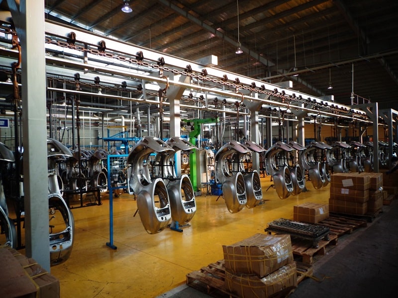 Trong các nhà máy lắp ráp ô tô, băng tải xích treo giúp di chuyển các bộ phận của xe từ một trạm lắp ráp đến trạm lắp ráp tiếp theo.