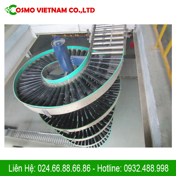 - Tiết kiệm không gian: Thiết kế xoắn ốc giúp vận chuyển hàng hóa theo chiều dọc, giảm diện tích sàn sử dụng so với băng tải thẳng.