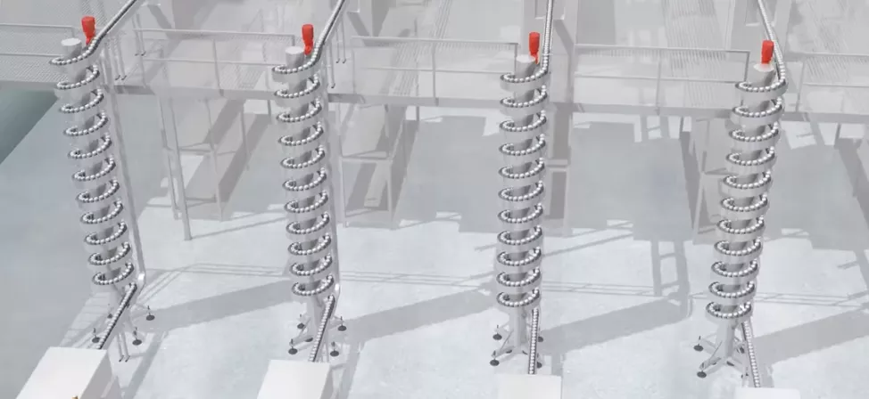 Băng tải xoắn ốc uốn cong kiểu mới bao gồm 4 kiểu và loại tiêu chuẩn có thể được tùy chỉnh và sửa đổi tại hiện trường để đáp ứng các nhu cầu và yêu cầu mới nổi. Mọi kiểu máy đều bao gồm một hệ thống dẫn hướng bao gồm các ổ trục ma sát thấp chính xác. Các thanh trượt không có giá đỡ nên chỉ có ma sát lăn. Không cần bôi trơn nên độ ồn thấp và vận chuyển sạch sẽ. Tất cả những điều này giúp bạn có thể thiết kế băng tải xoắn ốc chỉ với một động cơ. Điều này giúp tiết kiệm rất nhiều năng lượng và yêu cầu bảo trì thấp.