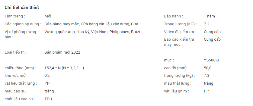 Thông tin chi tiết sản phẩm YS500-8: