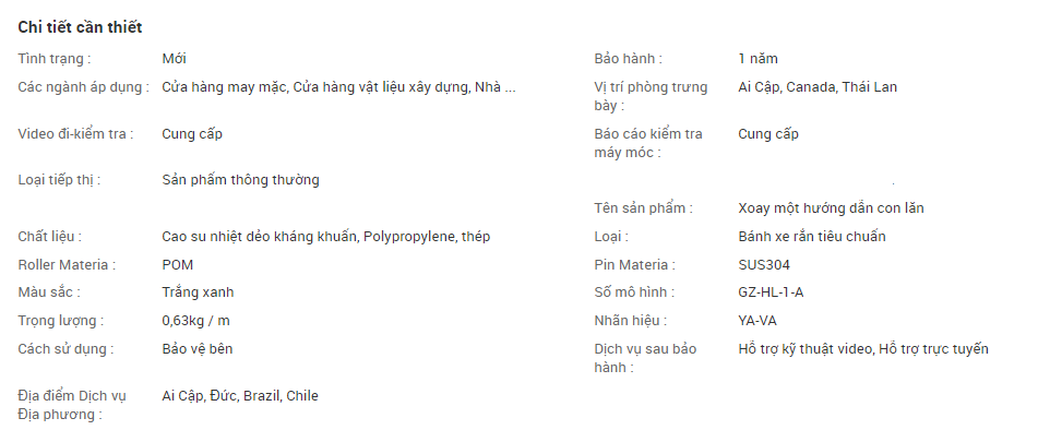 - Chất liệu con lăn: POM