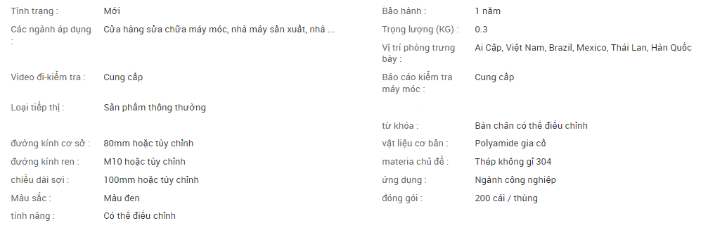 Chân tủ có thể điều chỉnh có khớp bi giữa đế và thanh, do đó cho phép chân điều chỉnh một góc.