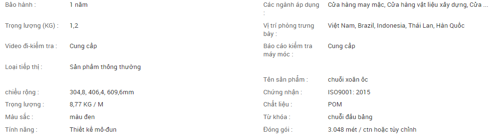 - Bao bì: 1 hộp = 3.048m = 80 chiếc