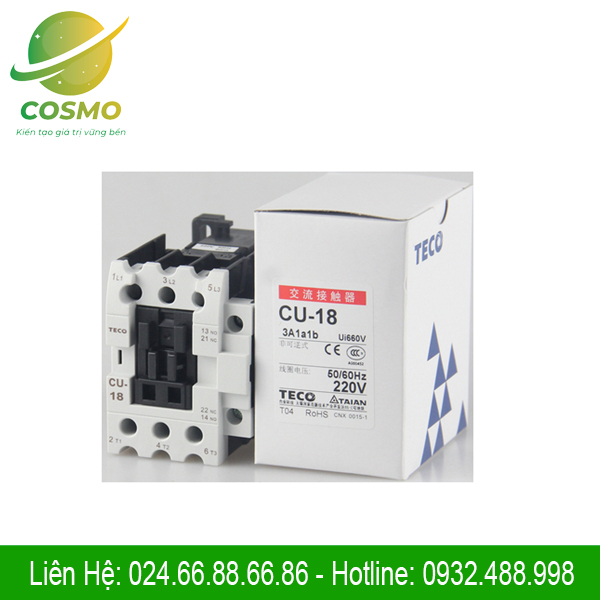 CONTACTOR ,[CU18] 3 PHASE,Rated current(A) 18A,Rated operating voltage(V) (Ue) 400V/ 440V,Control circuit voltage 220VAC