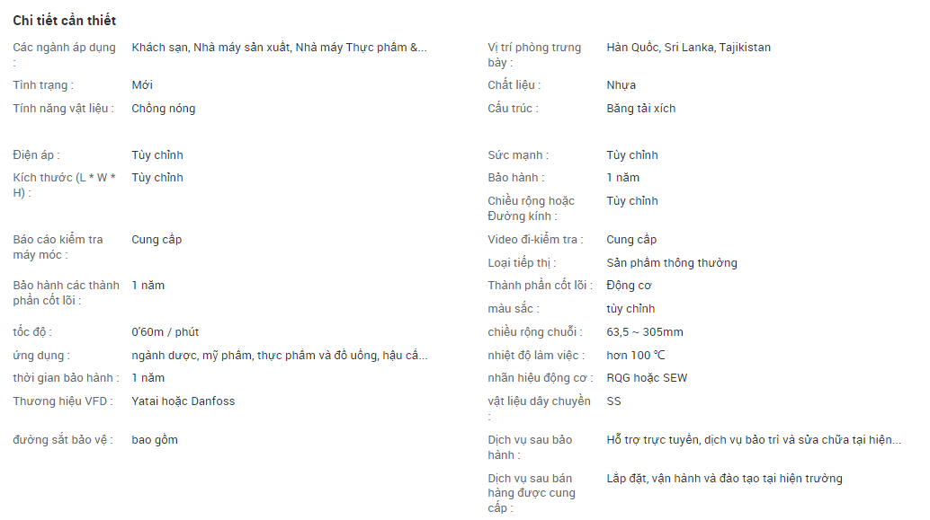 - Cấu trúc : Băng tải xích