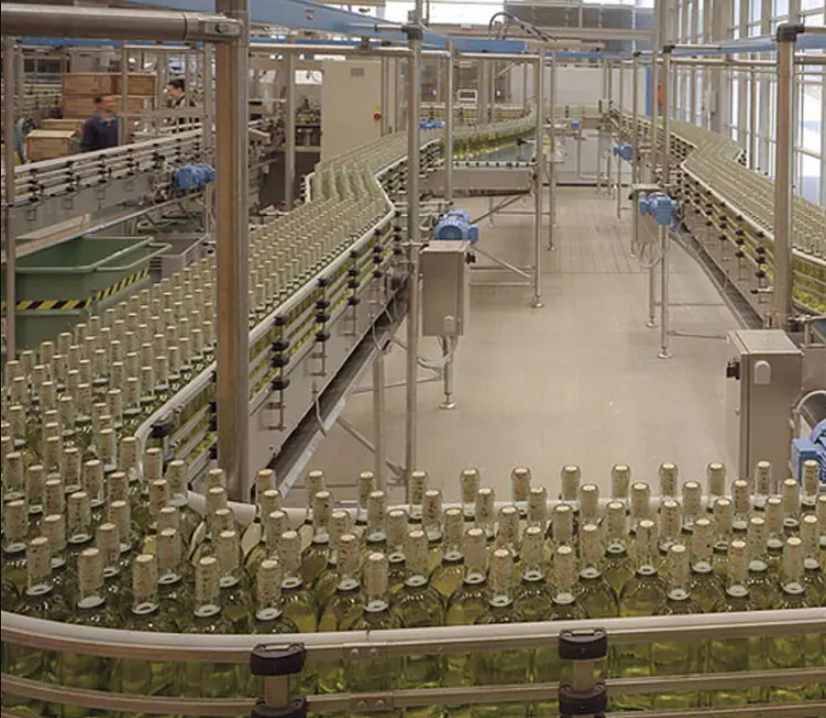 - Làm cho hai dây chuyền băng tải tấm xích thành một dây chuyền hỗn hợp có đầu và đuôi chồng lên nhau có thể làm cho các thùng chứa ở trạng thái chuyển tiếp động và không có chai nào bị bỏ lại trên đường băng tải, điều này có thể đáp ứng việc vận chuyển các chai rỗng và không có áp suất. đầy chai.