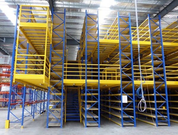Những sàn lửng phía trên thường được dùng để lưu trữ các loại hàng hóa có khối lượng vừa và nhẹ. Pallet có khối lượng lớn được đặt ở kệ tầng dưới cùng.