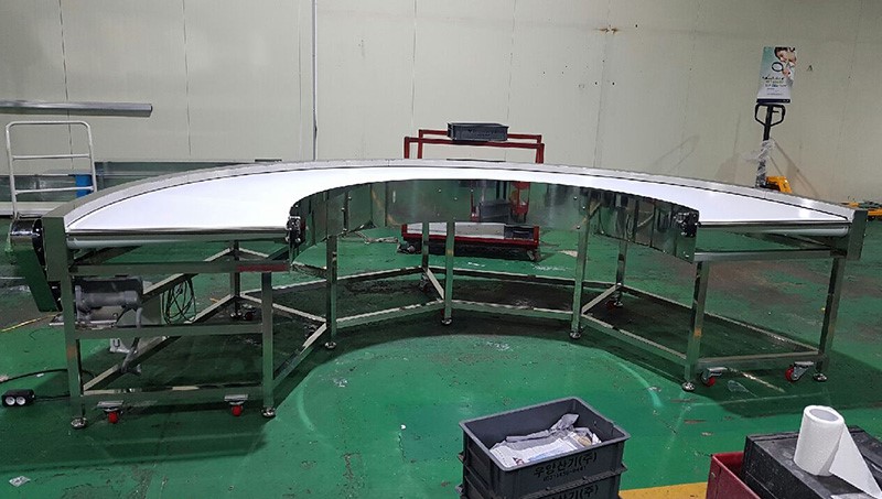 Ví dụ, thay vì sử dụng nhiều băng tải thẳng nối tiếp nhau với các khúc gấp phức tạp, chỉ cần một băng tải cong 180 độ có thể thực hiện cùng chức năng mà tiết kiệm diện tích hơn đáng kể. Điều này không chỉ giúp giảm chi phí lắp đặt mà còn tạo điều kiện thuận lợi cho việc bố trí các máy móc khác trong dây chuyền.