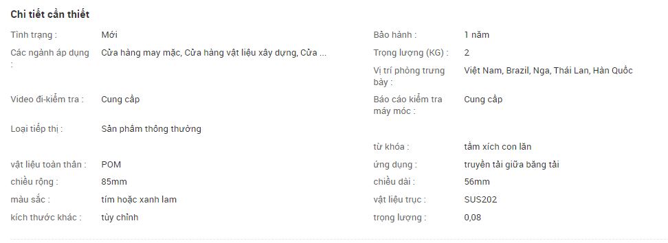 - Từ khóa: tấm xích con lăn