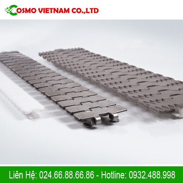 + Mặt băng tải được liên kết từ các tấm mắt xích như xích tải công nghiệp.