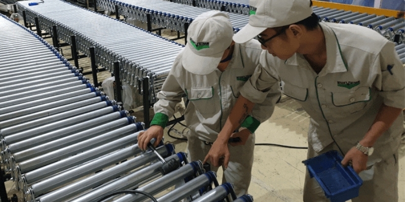Kiểm tra kỹ càng quá trình lắp ráp hệ thống băng tải con lăn xếp linh hoạt