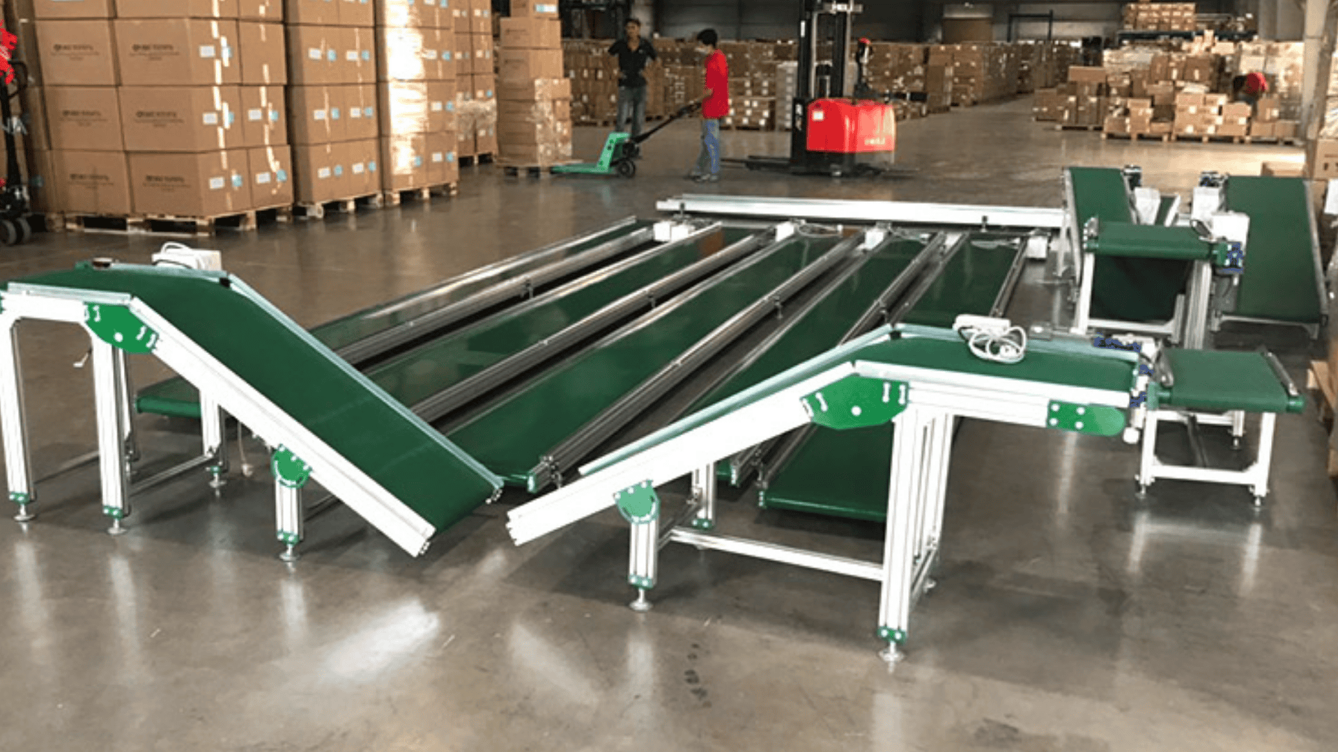 - Phân loại hàng hóa: Băng tải gấp khúc có thể được sử dụng để phân loại hàng hóa theo kích thước, trọng lượng hoặc loại hàng hóa.