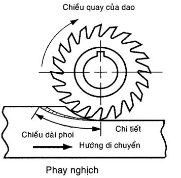 Phay Nghịch là quá trình phay mà ở đó chiều quay của dao và chiều tiến của bàn máy ngược chiều nhau.