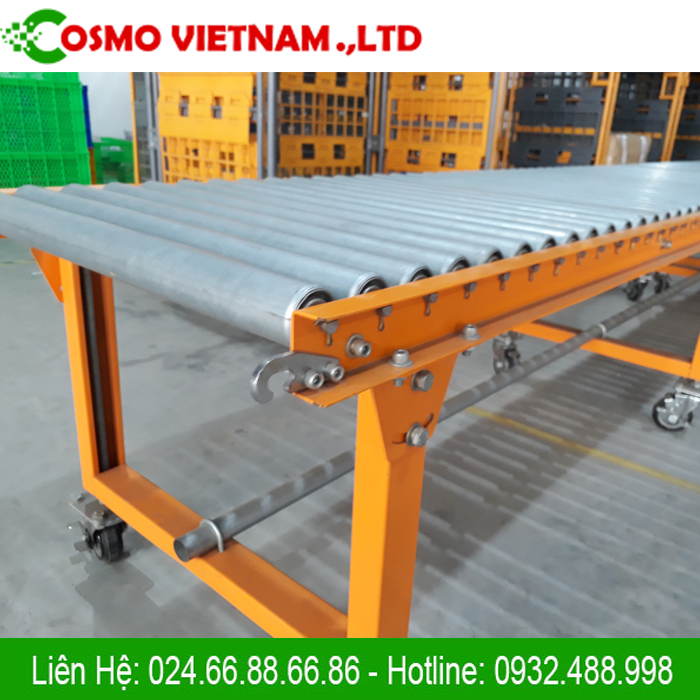 Đây là dòng băng tải công nghiệp được ứng dụng phổ biến trong ngành thực phẩm, giúp vận chuyển sản phẩm và giá đỡ thùng hàng. Băng tải con lăn được chia thành 4 loại khác nhau, bao gồm: