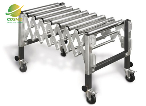 - Băng tải con lăn xếp: Có thể kéo giãn hoặc thu gọn, phù hợp với không gian linh hoạt.