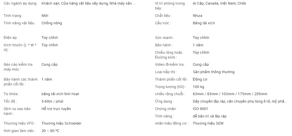 Vật liệu băng tải xích linh hoạt